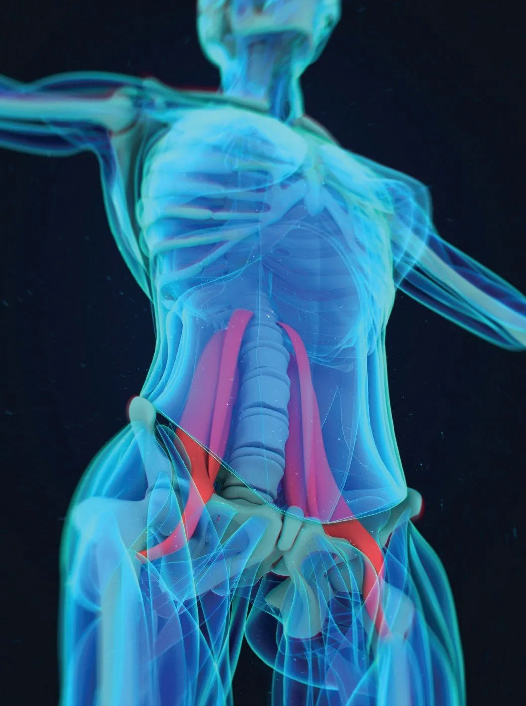 The psoas is a deep-seated core muscle connecting the lumbar vertebrae